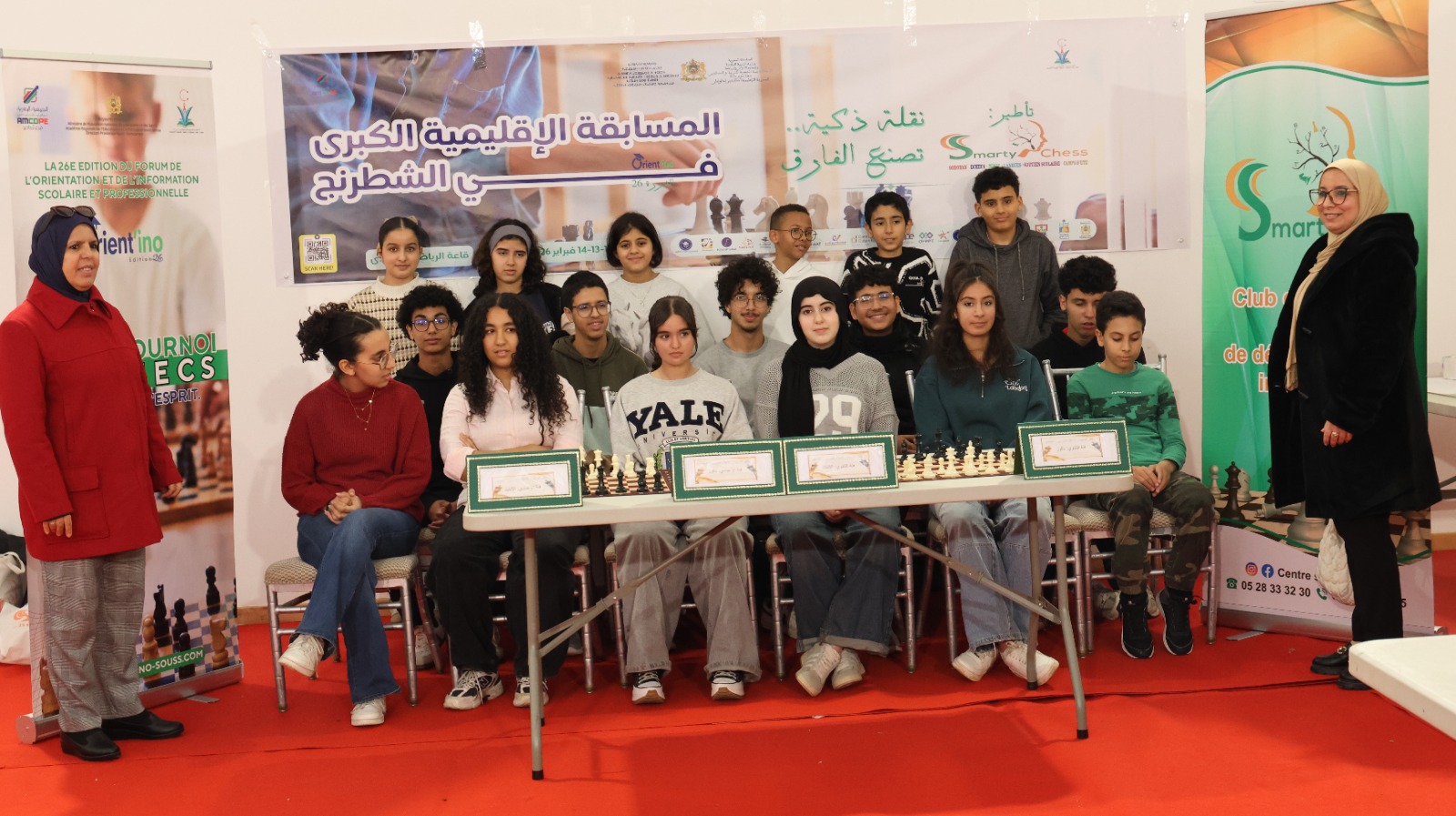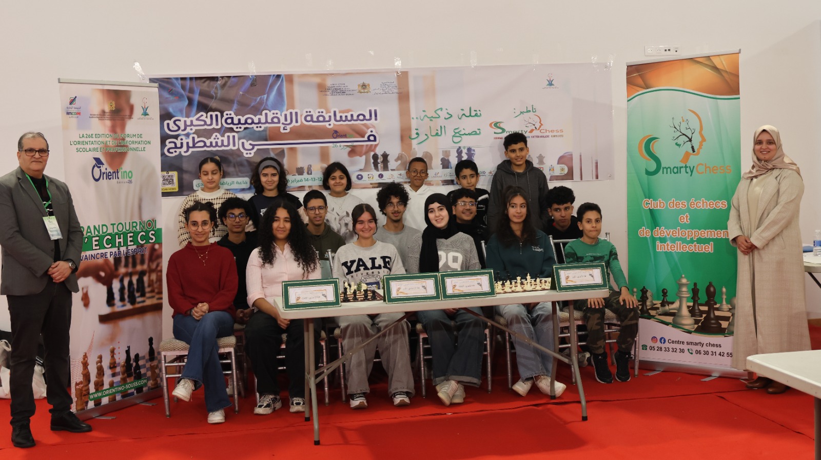 المسابقة الإقليمية للشطرنج: بمشاركة 57 مرشحاً يمثلون 31 مؤسسة، أظهرت النتائج تألقاً لافتاً للقطاع العمومي بنسبة تمثيلية بلغت 73.7%، مع تتويج مؤسسات: القلم، ابن الهيثم، الحنان، وأبو بكر ابن العربي.